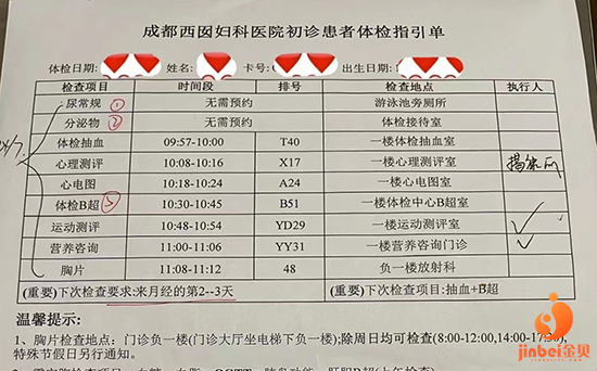 【成都西囡妇科医院试管婴儿之路】看医生当天马上安排全套体检,除了抽血、B超,还包括了心理、运动、饮食健康等的项目。心理做了90道题,测出来强迫症严重、易怒。运动健康测出来运动量太少,建议一周三四次心率151左右的跳绳、跑步运动。饮食健康测出来体脂率30.1下肢肌肉量太少,让少吃甜和油。抽血的小哥温柔又帅气,抽了我10管血,抽到后面血都要抽不出来了。