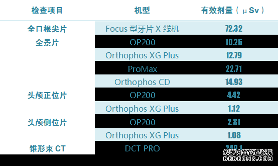 (每种影像学检查的放射剂量)
