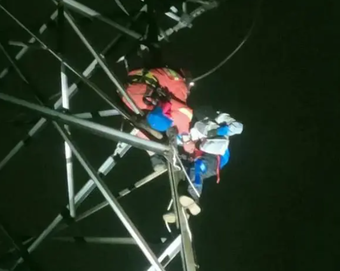 小学生网购设备爬上20米高压塔被困,消防员紧急施救