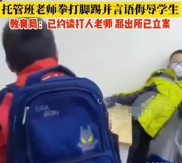 在烟台市开发区的一所托管班里,一名男老师拳打脚踢和言语侮...