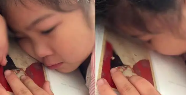 8岁女孩趴在去世3年姥姥照片上流泪 网友评简单的爱